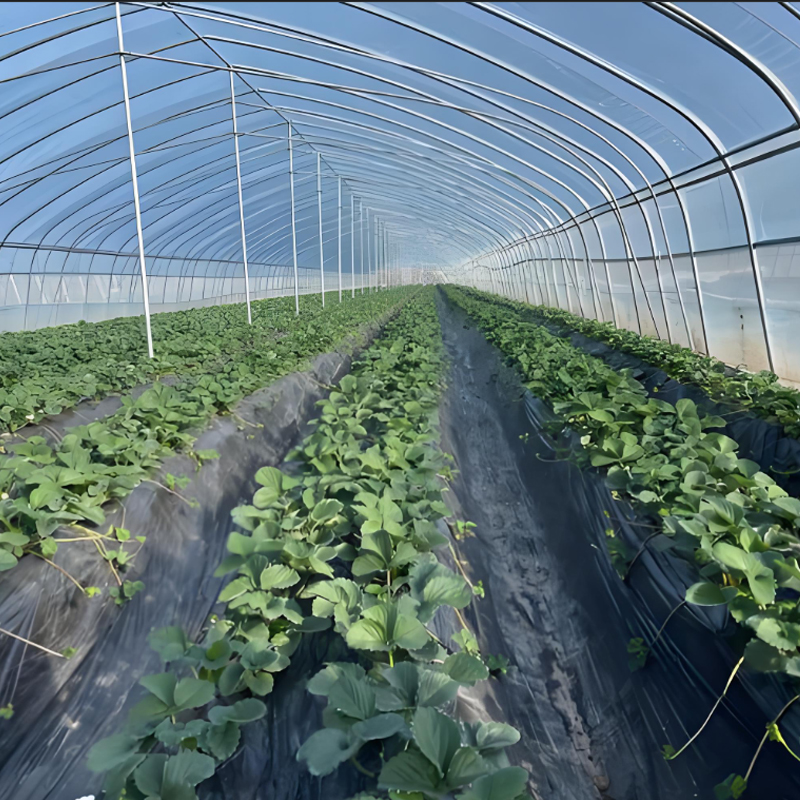 1)针对草莓种植生产特性设计配比,优选专用树脂五层共挤吹塑加工;